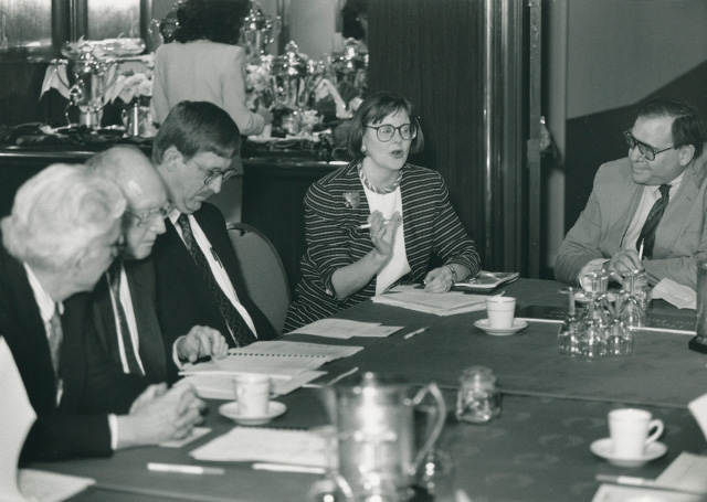 Barbara Gill (center) leading a discussion with the Dana Alliance.