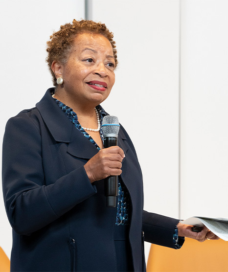Opening the discussion, Joanne Berger-Sweeney, Ph.D., a board director of the Dana Foundation and president emeritus of Trinity College, reflected on the importance of understanding the role of society when using neuroscience to benefit the public. Her remarks underscored an ongoing shift in emphasis from how science can serve communities to how communities themselves can guide and shape the uses of science. In that spirit, she outlined the panel as an exploration of reciprocity, how neuroscience not only informs society but can also be enriched and made more impactful through societal insight, partnership, and trust.