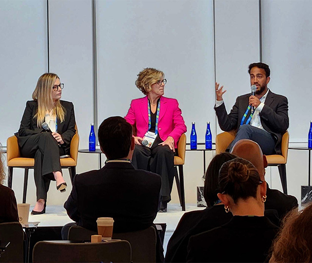 From left: Panelists Ashley Feinsinger, Paola Zaratin, and Narayan Sankaran.